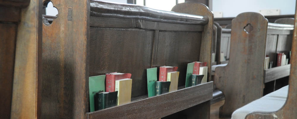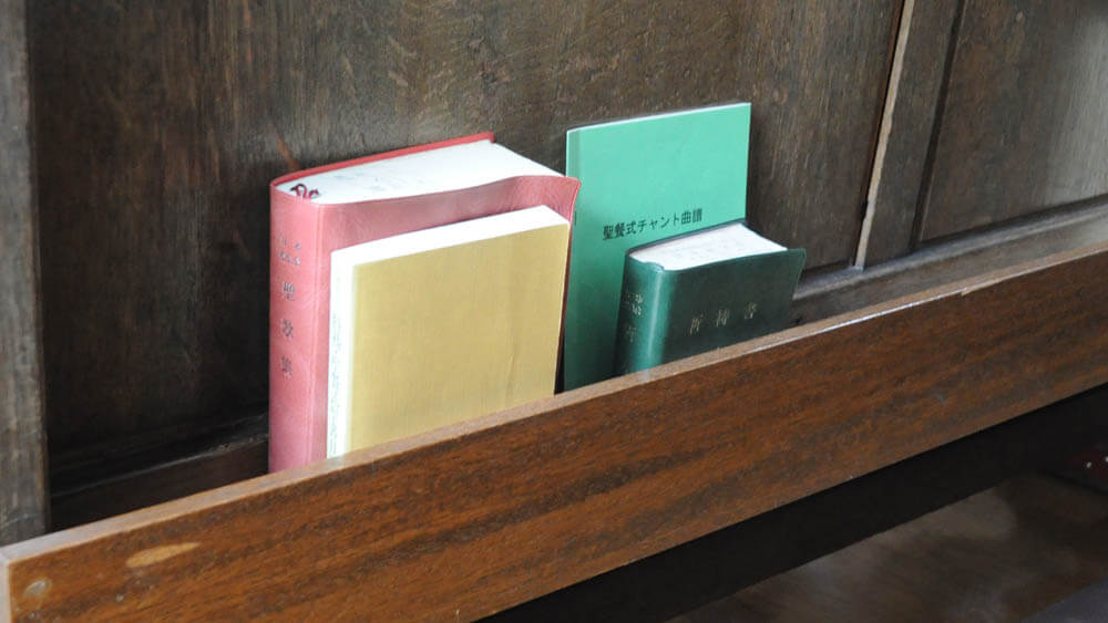 祈祷書、聖歌集などすべて教会に備え付けのものがありますので、そちらをお使いください。